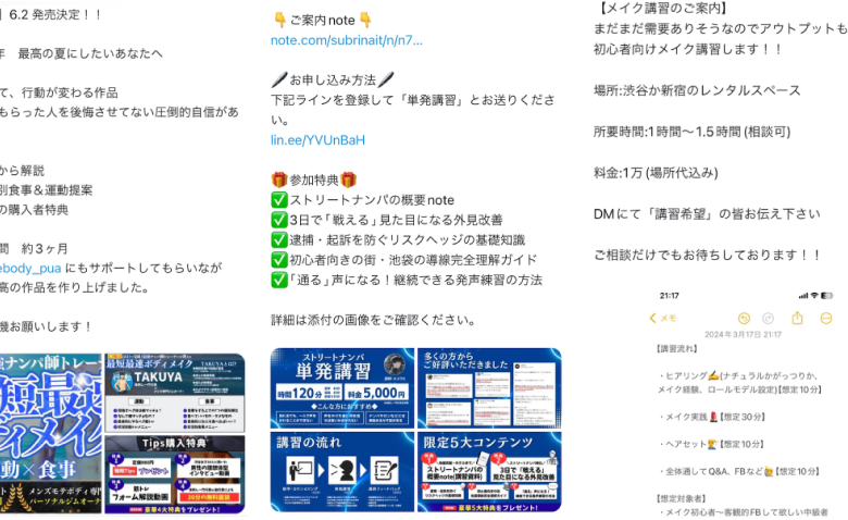 ナンパ界隈ではX(旧Twitter)でみんなと情報をシェアするのが定番です。ナンパやマッチングアプリでモテるための活動をしている人たちに対して、Xを中心に有益な情報を提供していきます。